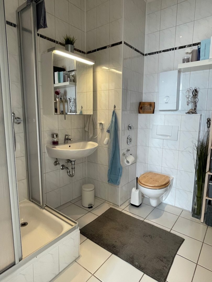 - Bad mit Dusche und WaMa-Anschluss hell gefliest